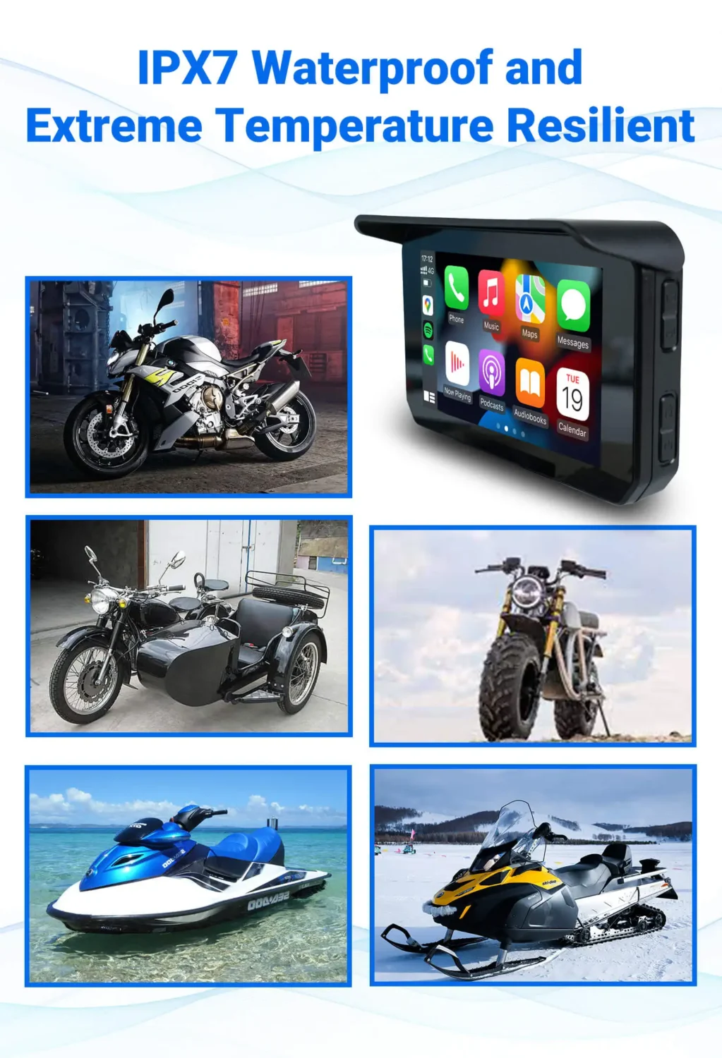 Motorcycle Universal IP67 Waterproof 5 inch Touch Screen Wireless