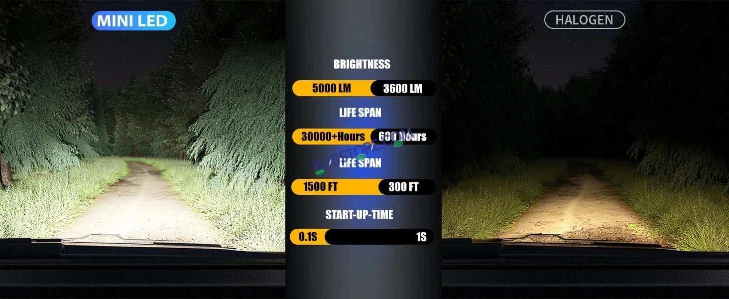 * Super bright with output 10000lm per light for safety driving at night