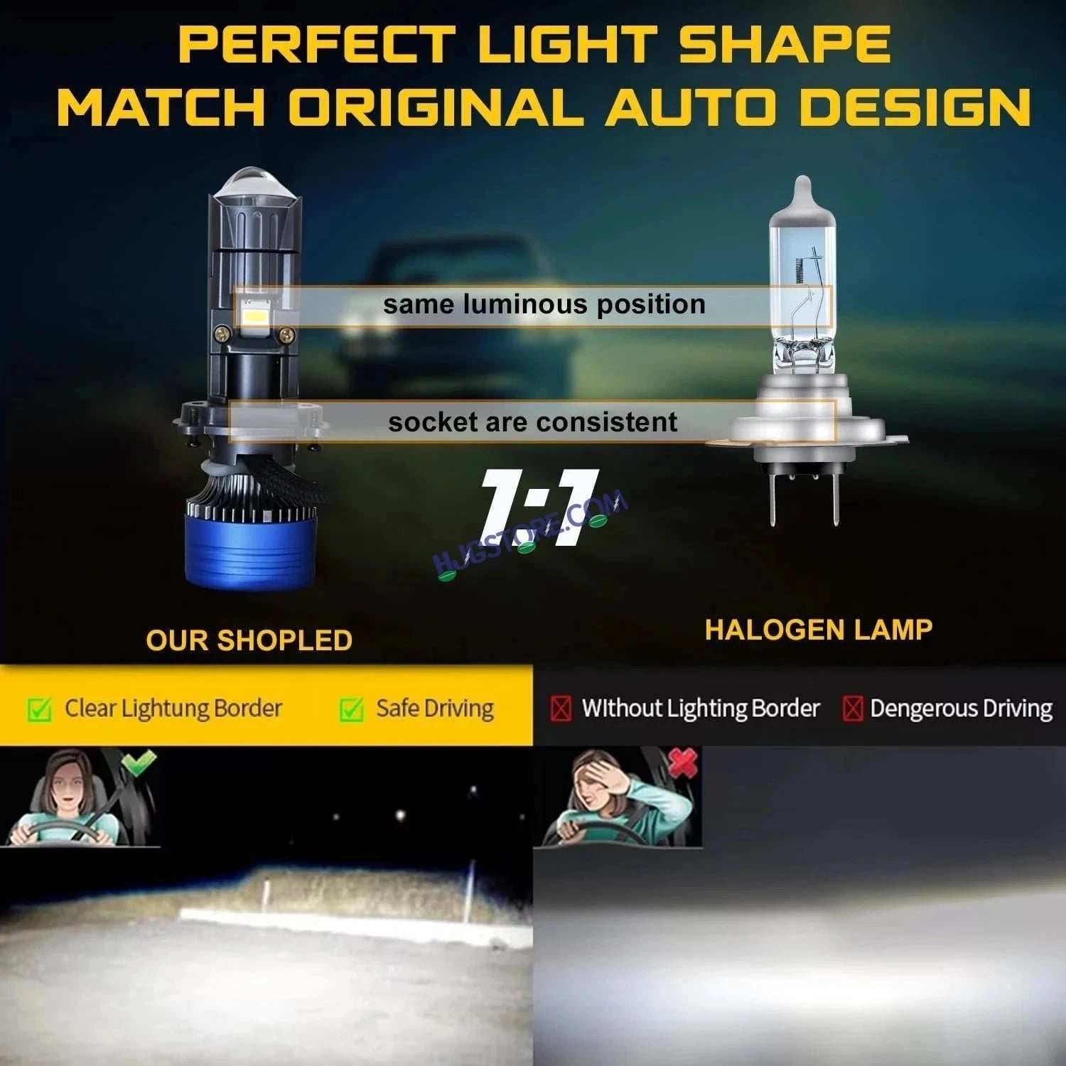 * Each HJG Led Headlight is aligned with the base using laser during manufacturing to ensure a perfect beam pattern.