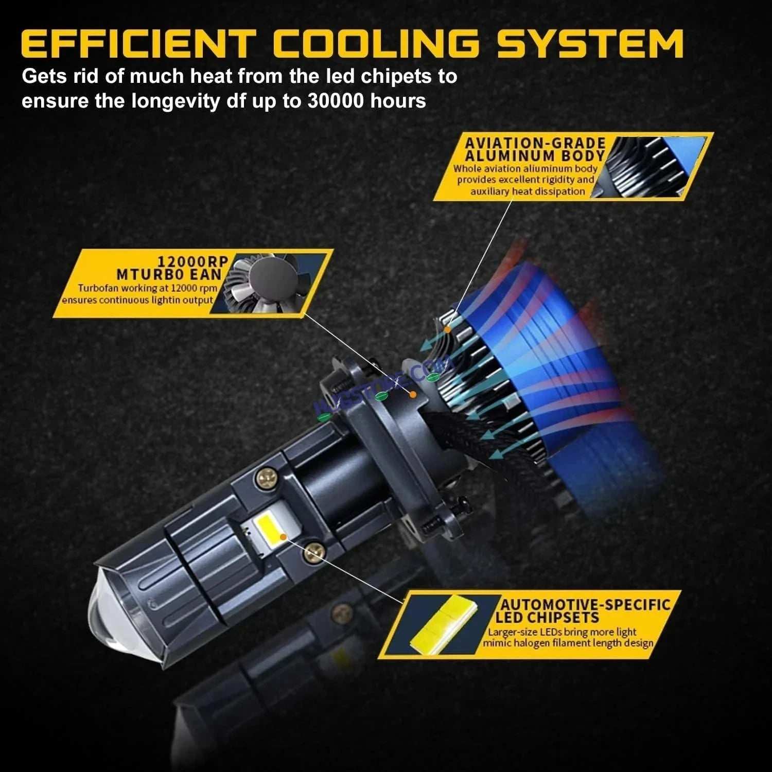 * HJG Led Headlight uses a wide thermal control system to keep the lights cool.