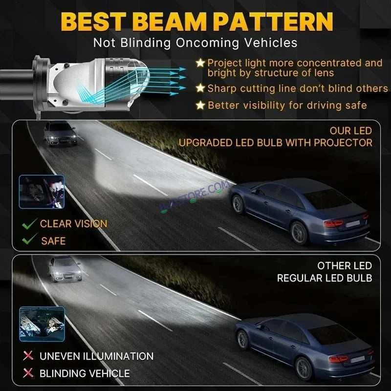* The latest technology to ensure a perfect beam pattern without any dark spots or foggy light