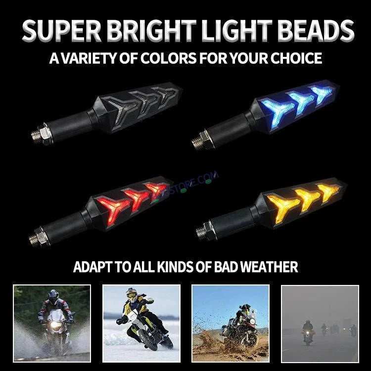 HJG Waterproof Flexible Arrow Running Style Blinker Bright LED Indicators Universal For All Bike Models Motorcycle Turn Signal Lights