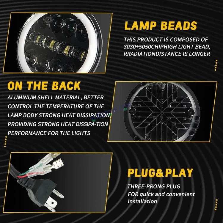HJG 7 Inch Fashion Design Hi/lo Beam Black Round 7" Headlight 60w H4 Led Headlamp 7inch Drl Led Headlight 231045 HJG
