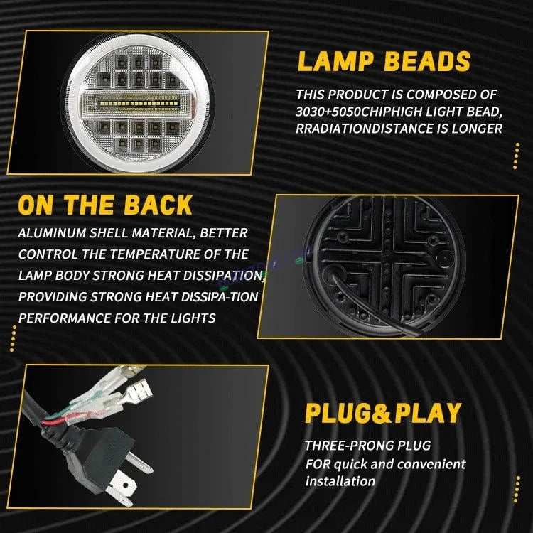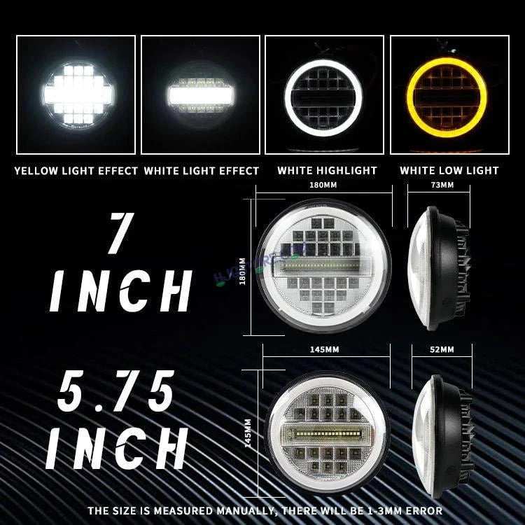 HJG 7 Inch Led Headlight Assembly Halo Lights Dual Color Yellow White 7 Inch Round Motorcycle Lights For Jeeps Universal Car Compatible with Royal Enfield, Jeep & Harley Davidson Diamond