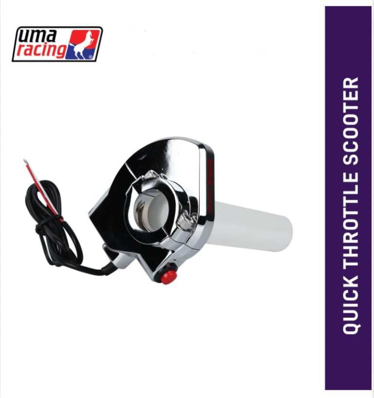 DescriptionUma Racing Quick Throttle for Scooter with CableChrome color 02Q00020Uma RacingADVANTAGELarger pulley for shorter stroke to create a quicker throttle response to go from 0 throttle to widely open 100 throttle position.More responsive and rev faster than before.FUNCTION Controls the flow of fuel or power to an engine by sliding the slider mechanism of the carburettor.